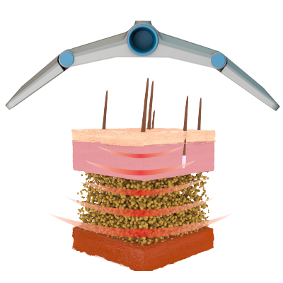 The Selective RF field is precisely focused into adipose tissue where it increases temperatures to apoptotic levels.